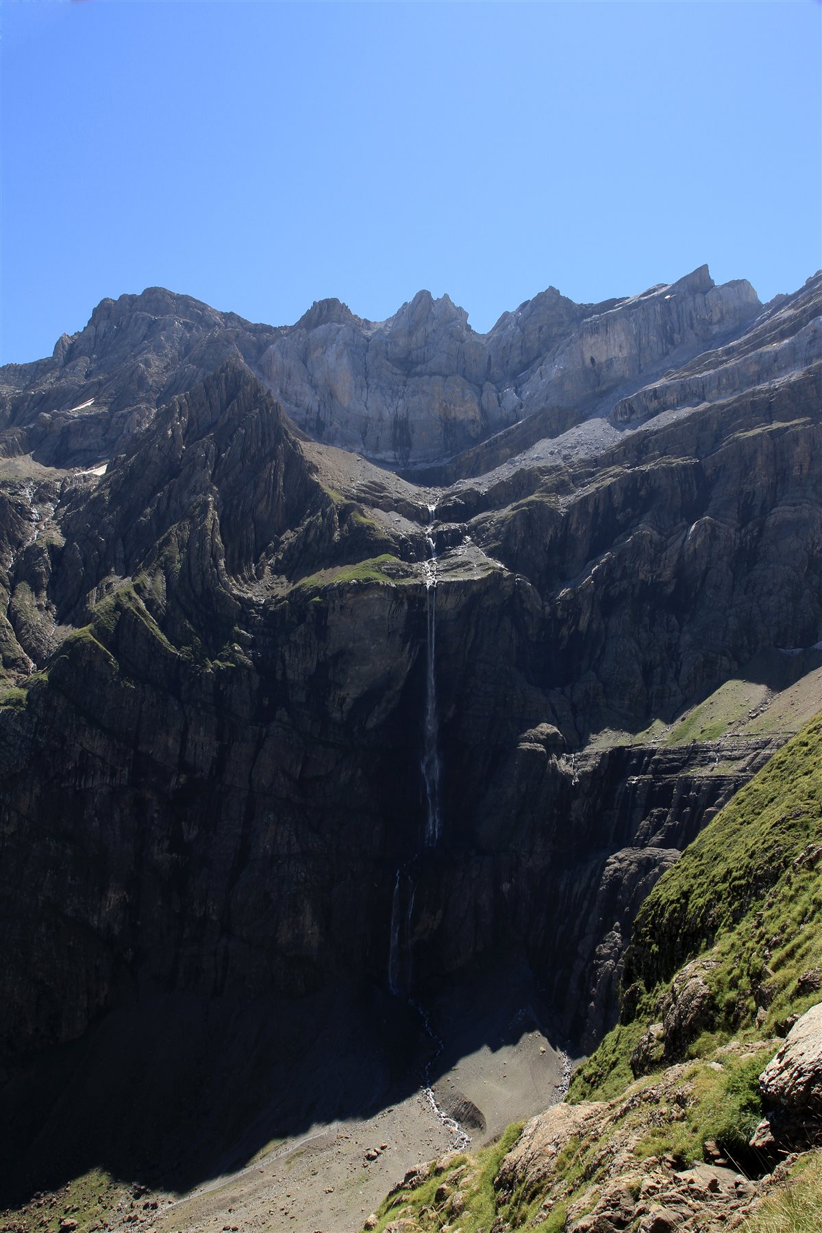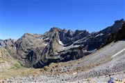 Enfin une magnifique journée, à l'instar de celle passée sur le Carlit. Bon, on passe sur le petit déjeuner frugal qui nous aura bien énervés, et on file vers Gavarnie via les Granges de Holle. Cette fois le ciel est bien dégagé et on aperçoit le cirque dans son ensemble, avec notamment la grande cascade. Le but de la journée est d'aller au fond du cirque, puis de monter par la voie dite des échelles au refuge de la brèche de Roland, de monter à celle-ci puis de redescendre à Gavarnie.