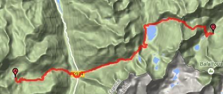 Une fois les lacs de Batboucou atteints, on récupère un sentier plus facile qui nous mène rapidement au lac d'artouste. On pensait pouvoir s'abriter à un refuge, mais il s'agissait en fait d'une maison edf... rude... On squatte quand même un bout de toit pour manger en mode clodo, dans le froid. AL a le moral bien bas et lorsqu'elle a vu qu'il y avait des gens qui étaient venus par un petit train touristique, elle décide d'arrêter là les frais et de redescendre en vallée. Après moulte hésitations, je la laisse partir seule et continue avec Tof et la Godille en espérant un mieux pour cet après midi et demain. quel muffle je fais... Au final, c'est probalement elle qui aura fait le bon choix. Ce soir elle est à Pau, et on s'y retrouvera demain.