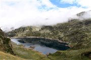Malheureusement, pour une fois, la météo avait raison : il fait bien moche aujourd'hui : Une petite bruine de me***e tombe sans discontinuer. On s'équipe avec les goretex et on se résigne à partir vers 8h00. En plus, on n'a peut être pas fait le meilleur choix d'itinéraire. Le topo de la Trans'Pyr faisait passer par le Port du Lavedan et le col du Palas. Ne voyant pas de chemin sur la carte, j'ai plutôt opté pour le col de la lie, qui, bien qu'en pointillé était indiqué sur la carte par un chemin balisé. Mais au final, ce col de la lie s'est avéré bien difficile. Un cheminement très technique dans de gros blocs instables encore une fois, le tout sous la pluie et la bruine, dans une ambiance bien fraiche ! Autant dire que le moral en a pris un coup sévère. La descente notamment vers les lacs de Batboucou était interminable et on avait l'impression de ne pas avancer, d'autant plus qu'on ne voyait pas grand chose à cause du brouillard.