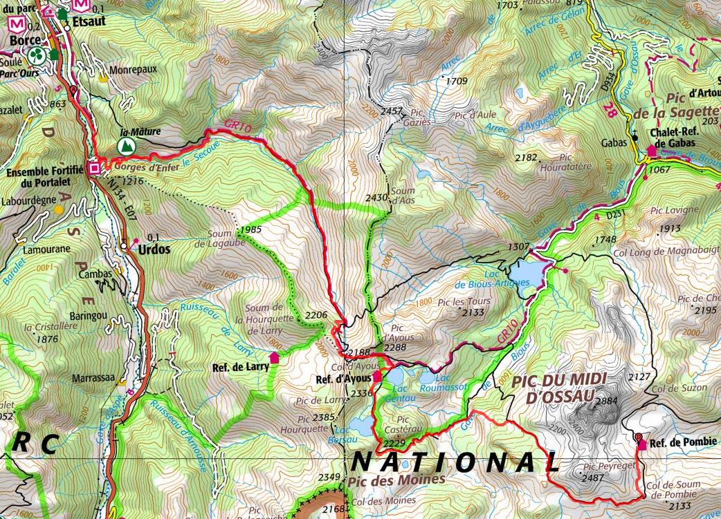Une petite pause et on reprend notre route. Il nous reste le col d'Ayous à franchir avant d'attaquer la longue descente vers Etsaut, que l'on fait au pas de course ou presque. Juste une petite pause à la cabane de la Baigt de saint cours pour grignotter un bout et l'on continue jusqu'au chemin de la mature, sentier creusé dans la roche.