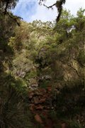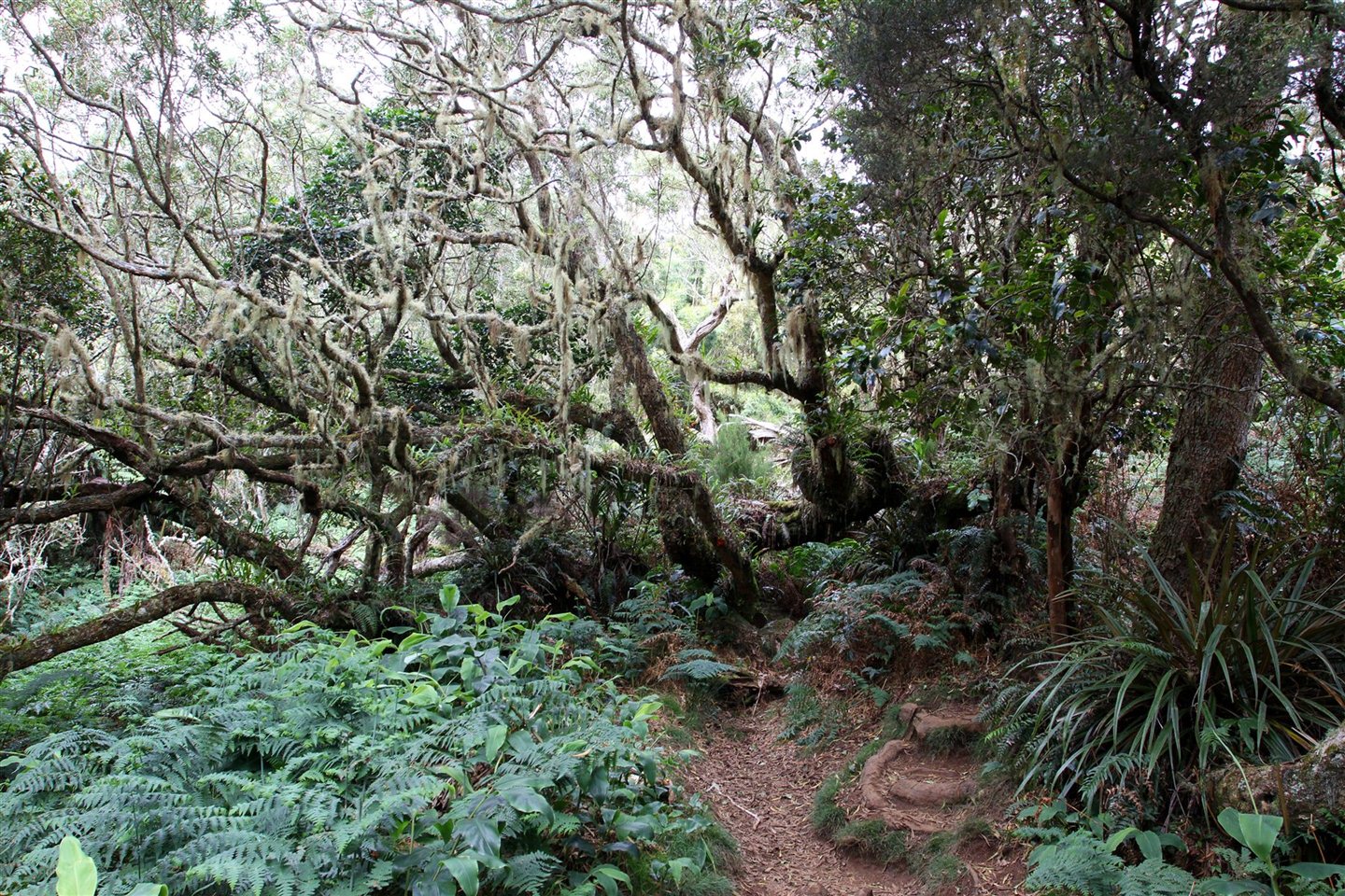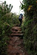 Le ciel se couvre de plus en plus. Nous sommes même parfois dans le nuage. Nous marchons lentement et c'est au bout de 3h que nous atteignons enfin le gite, dans une atmosphère fantastique, entre brume et végétation envahissante.