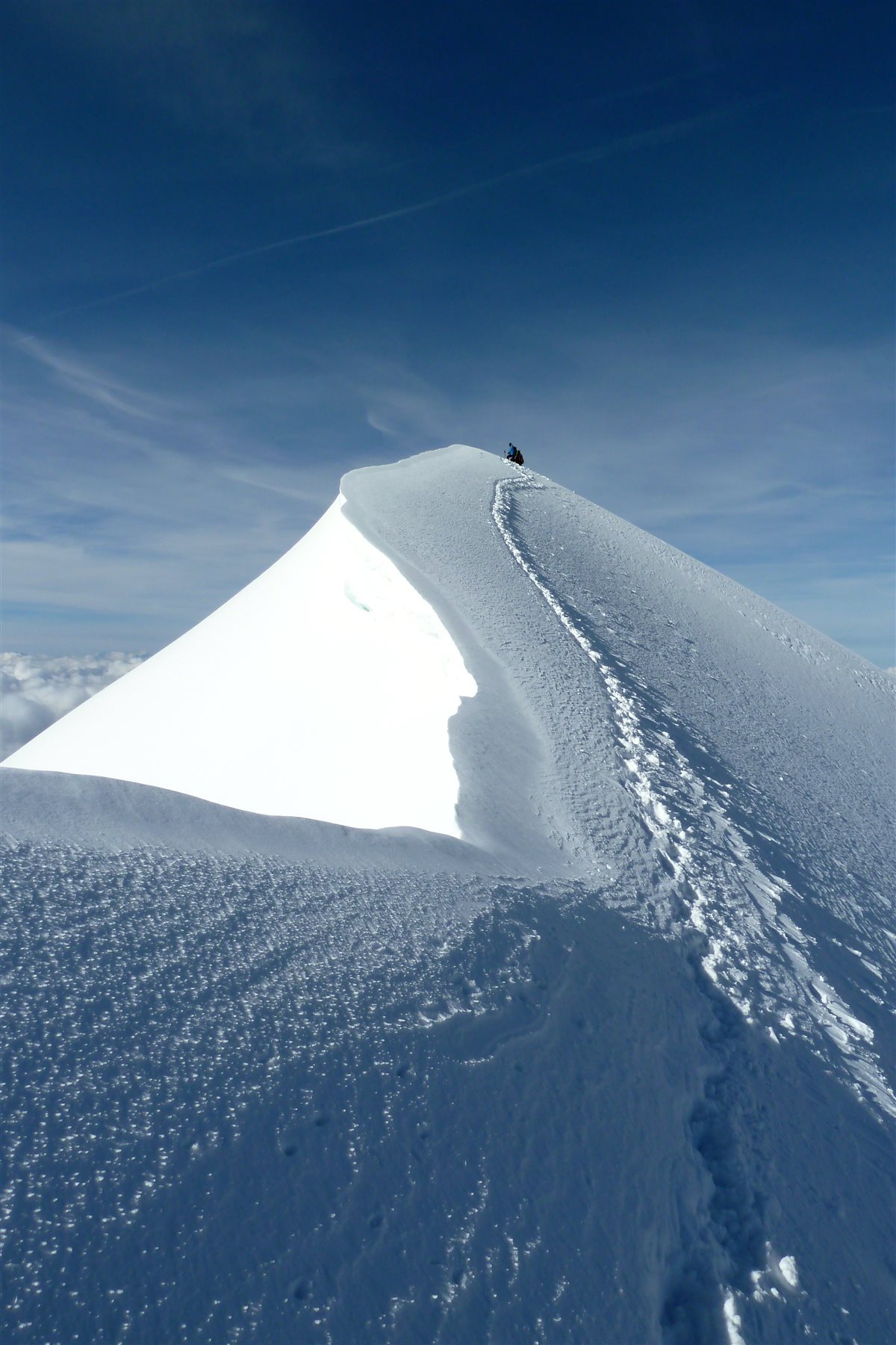 La météo ne fut pourtant pas de tout repos avec de la neige et du froid au départ du second jour, ce qui a compliqué un peu les choses notamment lors de l'ascension du premier dôme, mais ensuite c'est un beau soleil qui nous a accompagné pour finir en beautée. Enfin, tout ceci ne fut possible bien sur que grâce à des guides expérimentés, en l'occurence gràce aux guides de Saint-Gervais que je souhaite chaleureusement remercier. Et en prime, nous avons été filmés pendant toute cette aventure !