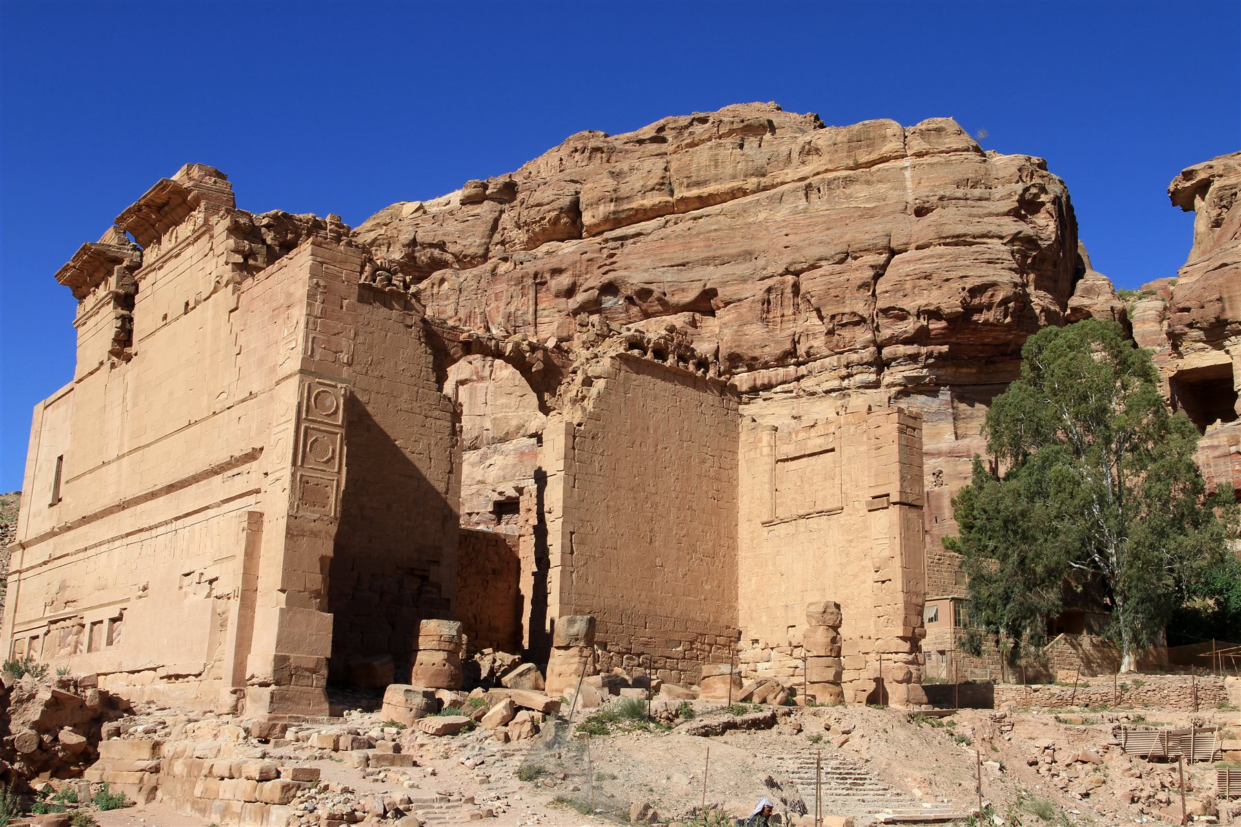 Le centre de Pétra est un mélange de différents styles. Nabatéen tout d'abord, mais aussi romain, puisque ces derniers ont chassé les Nabatéens. On y découvre notamment le grand temple romain, les thermes romains, ou encore le Qasr al-bint. Le centre de Pétra a été principalement construit en pierre de taille, si bien que peu de bâtiments ont survécu à l'épreuve du temps. Le Qasr al-bint est un de ceux qui a le mieux résisté. Les autres temples et bâtiments visibles aujourd'hui ont pour la plupart été en partie reconstruits lors de fouilles.