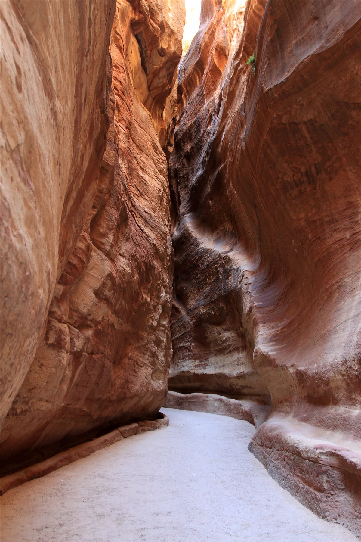 Notre visite se termine par la remontée du siq, que nous découvrons donc en dernier, contrairement à tout le monde. Ce canyon étroit est gravé sur une bonne partie (des chameliers par exemple). Des canalisations d'eau sont taillées de part et d'autre. J'imagine l'émotion des explorateurs contemporains ayant re découvert ce site... parcourir ce siq et tomber sur le Khazneh...