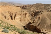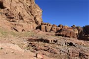 C'est une succession de canyons qui nous attend aujourd'hui, pour finir cette remontée vers Pétra en beauté. Les canyons sont tantôt étroits, tantôt bien larges, le parcours est très varié et est assez sportif. Nous finissons par déboucher au sud de la région de Pétra. Nous observons d'ailleurs les premiers vestiges d'ampleur comme le théatre de Sabra. Plus qu'un col à passer et nous serons aux portes de Pétra.