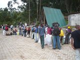 Une fois arrivés à Machame Gate, on s'aperçoit tout de suite que nous ne seront pas seuls ! Beaucoup de groupes sont déjà probablement partis, mais il reste encore du monde. Sans parler de tous les porteurs présents. Il nous faut alors faire les formalités pour obtenir notre permis de Trek : Inscription sur le registre et attente... attente... Pendant ce temps, nos porteurs s'organisent et se répartissent les charges. Nos cuisiniers nous ont préparé un bon déjeuner que nous prenons à table ! Excellent.